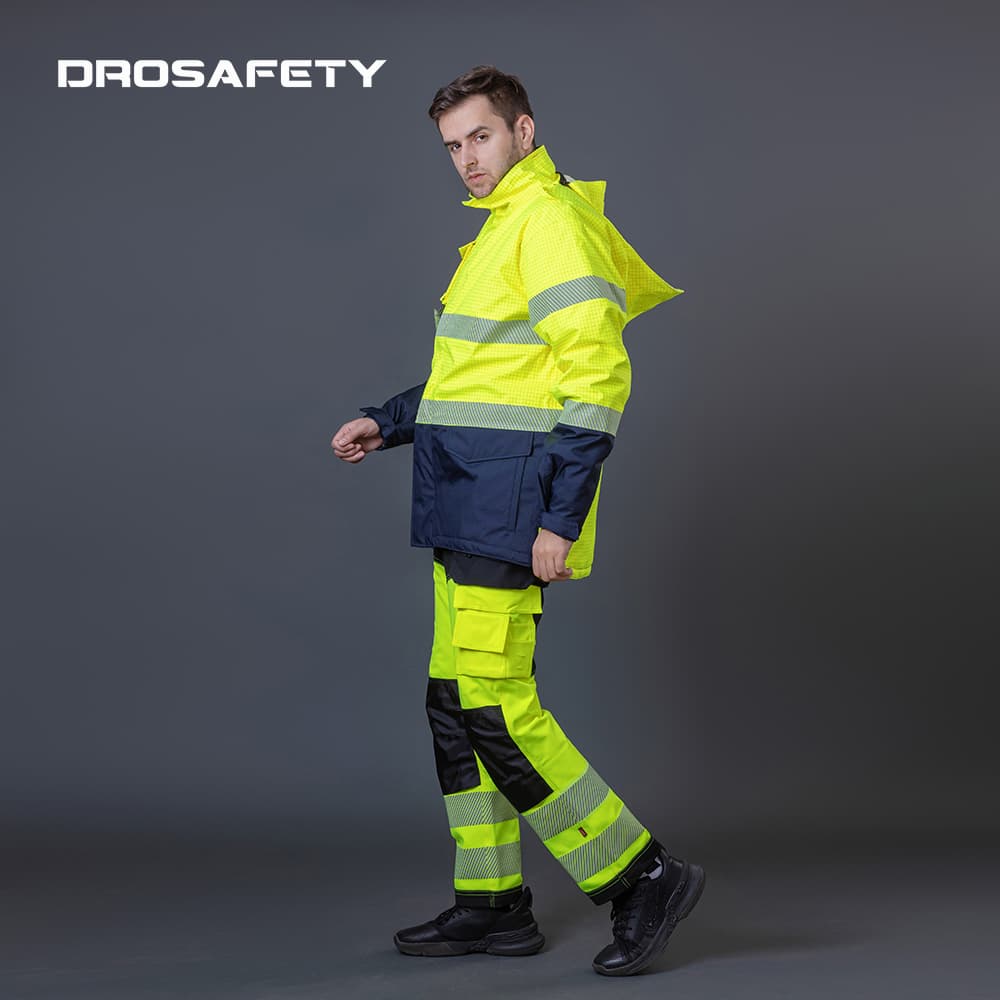 High visibility is crucial for safety during operations in low-light environments and must comply with the EN11612 standard. It uses highly saturated warning colors such as fluorescent yellow and fluorescent orange, along with 360° reflective strips. The reflective intensity meets the standards, enabling workers to be easily identified from a distance even in harsh conditions like heavy rain, thick fog, or at night, thereby reducing the risks of collisions and accidental injuries.